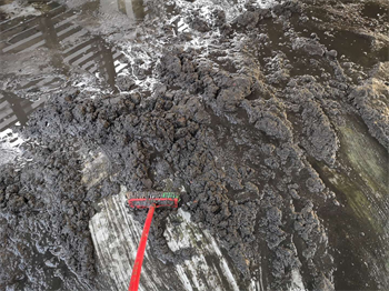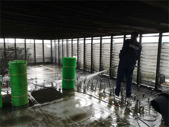 用高壓水槍對冷卻塔底盤清洗                                           清洗去泥