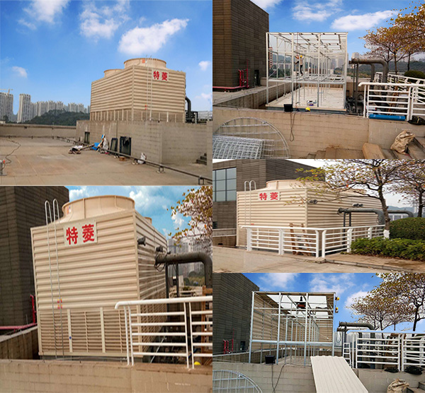 惠州東江環保橫流方形冷卻塔安裝 廣東特菱空調(http://www.zzykwj.com)方形橫流式玻璃鋼冷卻塔結構特點: (1)擋板:玻璃鋼材質,表面光滑美觀,耐腐蝕,防老化。 (2)填料:改性聚氯