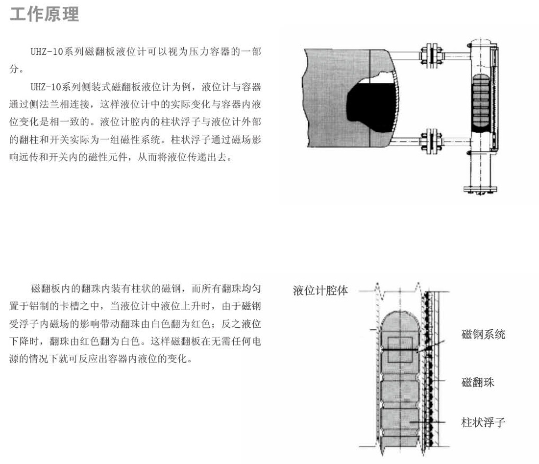 UHZ-10系列磁翻板液位計是北京金德創(chuàng)業(yè)測控技術(shù)有限公司在優(yōu)化國外同類液位計,結(jié)合本公司此類液 位計長期銷售中取得的經(jīng)驗的基礎(chǔ)上,依照化工工業(yè)部標(biāo)準(zhǔn)HG/T21584-95開發(fā)、研制出的新產(chǎn)品。